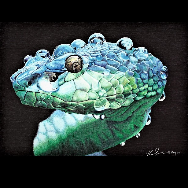 Blue Viper print of the original ballpoint pen drawing, 11"x14". Blues and greens blend together for a striking and detailed piece of art. Great gift for snake lovers or a beautiful complement to a cool-colored room.