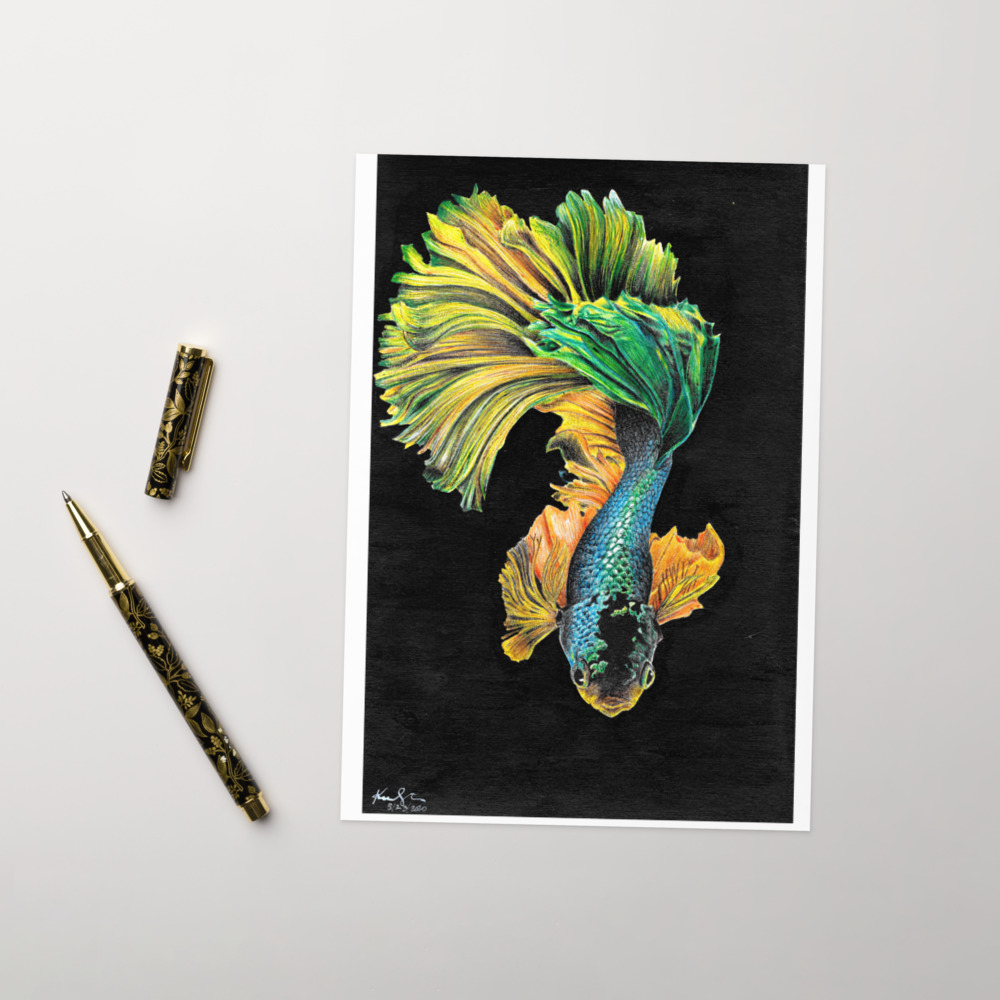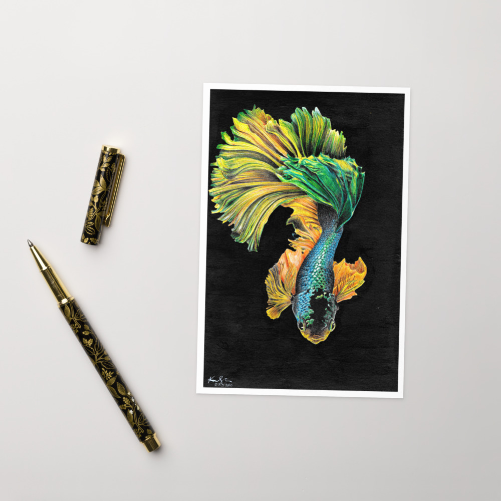 Blue Gold Beta Fish Greeting Card